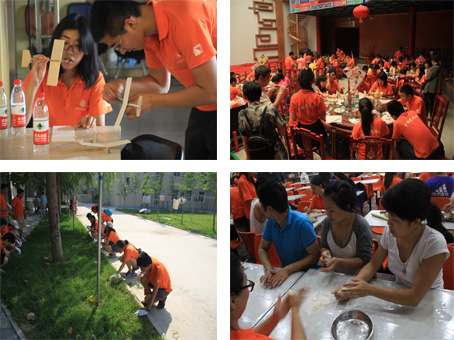 活动期间,全体营员参加了素质拓展破冰活动,通过钻电网、翻纸牌等项目,不断深入交流、分享体验,融炼团队,为后续的活动开展奠定了基础。随后,在北京中医药大学聆听“中西医健康观”主题报告并参观中医药博物馆,在广安门医院参观肿瘤病房和中药制剂加工厂,与医生面对面交流中医的应用前景,让营员们深度体验并交流了中医文化;游览天安门广场和故宫、参观中国古代最高学府国子监和孔庙、攀登长城等活动,让营员们近距离感受中华民族辉煌灿烂的历史;参观京东商城公司总部,让营员们从一个侧面了解中国经济的发展;在华北电力大学聆听“可再生能源的现在与未来”主题报告、参观新能源电力系统国家重点实验室和国家火力发电工程技术研究中心,让海外营员更好地了解中国新能源最新研究进展,加深了对中国在环境?;し矫嫠龉ぷ鞯娜鲜叮辉谇Ш汤先嗽何课世先?、在团结湖社区文化交流中心辅导居民学习英语等公益活动,让营员们收获了爱心、耐心和信心,并学会感恩,服务社会;在民俗园观看老北京民俗文化表演、学习老北京民间手工艺制作、品尝烤鸭和炸酱面以及京剧交流等活动让营员们感受到中国文化的多姿多彩和博大精深。作为此次活动的协办单位,北航充分发挥发挥航空航天的特色,组织营员参观了北京航空航天博物馆和国家空管新航行系统技术重点实验室,让营员们领略了航空航天的魅力,感悟了北航精神;聆听了北航校友、91金融创始人、CEO许泽玮关于“互联网金融的创新模式”的主题讲座,让营员们了解了互联网时代国内80后创业人的思考;进行了航模制作,让营员们亲身投入其中,体会科技实践的快乐;开展了包饺子、国家主题展示、一战到底知识竞赛等丰富多彩的活动,让营员们的才艺得到了充分展示,促进了大家的情感交流。