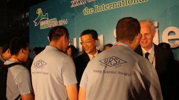中国电子科技集团公司党组书记樊友山和中国电子学会秘书长徐晓兰分别致辞。国际无线电科学联盟秘书长Paul Lagasse教授宣读青年科学家评选过程及结果。随后,怀进鹏校长、URSI主席Phil Wilkinson教授、樊友山书记等15位中外科学家代表分别向获得本届大会青年科学家的142位青年学者颁发了证书。我校符慧山、王晓晓、唐华、万育航、刘文龙等五位青年学者获此殊荣。最后,与会人员在欣赏北航学生艺术团文艺表演的同时,进行了自由交流活动?;嵋橛晌倚9式涣骱献鞔Ω贝Τぢ烙ㄖ鞒郑缱有畔⒐こ萄г?、宇航学院的相关领导和嘉宾也出席了大会。