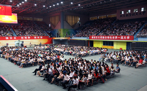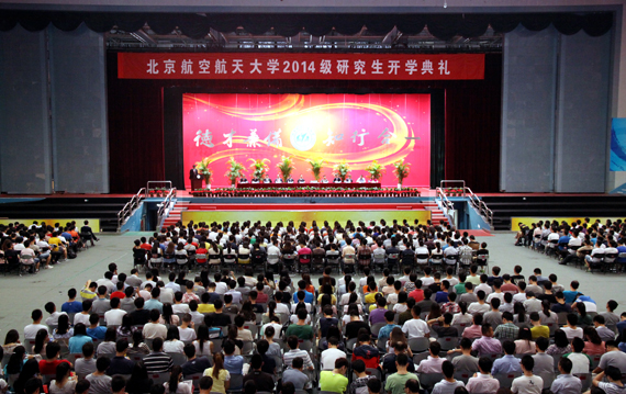 北航新闻网9月13日电(通讯员 包娱缦) 9月13日上午,北京航空航天大学2014级研究生开学典礼在学院路校区新体育馆隆重举行,党委书记胡凌云,校长怀进鹏,党委常务副书记张维维,纪委书记、工会主席纪素菊,副校长魏志敏、张军、王建中、陶智,校长助理、党政办公室主任李军锋,校学术委员会副主任樊瑜波及教师代表、生物与医学工程学院刘红出席典礼。部分学院书记、院长、研究生教学副院长、研究生指导主任、副书记及4124名研究生新生参加了开学典礼。典礼由研究生院常务副院长黄海军主持。