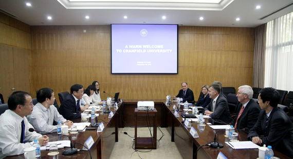怀进鹏校长、陶智副校长与克兰菲尔德大学代表团就两校合作进行了会谈。双方围绕建设基于研究的创新人才培养项目、开展科研合作等议题交换了意见,并就建立联合实验室、推动两校教师及学生交流等达成共识。双方认为应基于两校在航空航天学科等工程领域的优势开展强强联合,实现共赢?;崽负螅罩歉毙3び敫窭赘裆3し直鸫砹叫G┦鹆恕侗本┖娇蘸教齑笱в肟死挤贫麓笱妒苛吓嘌献餍椤?。