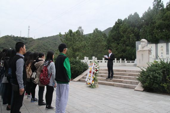 仪器科学与光电工程学院29名新生来到顺义区潮白烈士陵园。卢怡舟同学代表全体同学致祭文:“平沙莽莽黄入天,英雄埋名五十年。在烈士墓前,我们怀着崇敬的心情,瞻仰烈士陵园。烈士虽已逝去,英魂永存世间。今天我们在此扫墓,墓碑上的铭文,刻下的是烈士们的赤子之心。为了民族的独立和解放,为了国家的富强和幸福,你们大义凛然,视死如归……”。