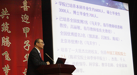 本次庆典大会在庄严的国歌声中开始,材料学院党委书记陈海秋主持大会。材料学院院长蒋成保首先代表学院对各位领导、嘉宾和校友们返校参加此次庆典表示感谢,并以“喜迎甲子华诞,共筑腾飞梦想”为题,介绍了材料学院的60年发展历程、发展成就及未来发展愿景。