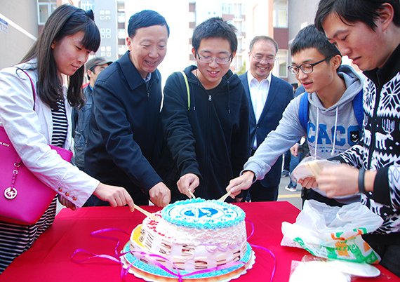 胡凌云书记、怀进鹏校长分别在沙河校区和学院路校区亲手切开校庆蛋糕,与同学们共同分享校庆盛典。嘉年华现场,胡凌云书记勉励同学们在保证学业的前提下,适当参与学生活动,开拓广博视野,培养丰富爱好?;辰粜3ぶ赋觯诳狗岣恍G旎疃耐?,营造大爱氛围,传承北航精神。张军副校长希望校庆嘉年华活动能成为营造校园文化的平台,成为学生展示智慧和才能的平台,成为师生交流、学生交流、学生与校友交流的平台。