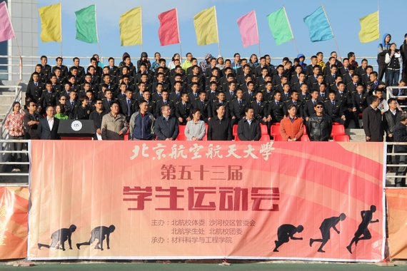 北航新闻网10月27日电(通讯员 陈明威/文 刘世泰 郝福超 徐嘉杨/摄影) 十月北航,金秋送爽。10月26日上午,我校第五十三届学生运动会在沙河校区田径场拉开帷幕。本次学生运动会由校体委、沙河校区管委会、学生处、校团委共同主办,材料科学与工程学院承办。校党委书记胡凌云,党委常务副书记张维维,纪委书记、工会主席纪素菊,以及各机关部处和学院领导出席了本次运动会开幕式。