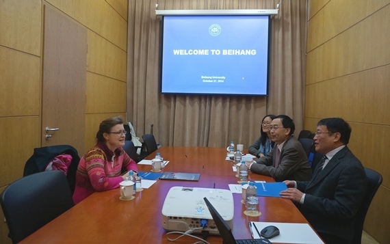 陶智副校长对米列教授再次访问北航表示热烈欢迎,并回顾了北航与约瑟夫·傅里叶大学近年来在人才培养领域所取得的合作成果。陶智副校长表示,欧洲是北航国际合作的重点区域,约瑟夫·傅里叶大学是法国顶尖的理工类大学,两校在硕士双学位项目、博士生联合培养及科研领域具有广阔的合作空间。米列教授对两校的合作潜力予以充分肯定,并表示将以科研为抓手,增进两校教师间的学术交流,推动落实合作项目。双方随后围绕在纳米科学、机械工程等学科领域开展合作深入交换意见,并达成多项共识。双方一致认为,未来将举办双边研讨会,促进两校教授聚焦合作,深入推进两校的伙伴关系。