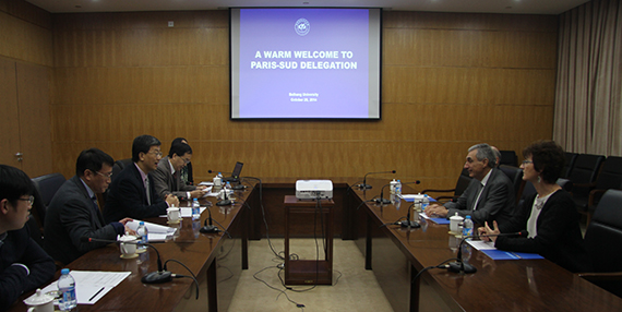 北航新闻网10月28日电(通讯员 童骏/文 廖行/摄影) 10月28日上午,巴黎第十一大学校长雅克·毕杜恩(Jacques Bittoun)教授、副校长让-皮埃尔·弗热(Jean-Pierre Faugere)教授等一行三人访问我校?;辰粜3?、陶智副校长在新主楼会议中心第五会议室亲切会见了来宾。我校国际交流合作处、自旋电子交叉学科研究中心相关负责人出席了会谈。