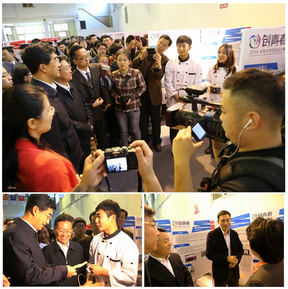 4日下午,在全国大学生创业项目开放日暨全国重点创业园推介会大学生专场中,团中央书记处第一书记秦宜智、湖北省政协主席杨松、教育部部长助理林蕙青、团中央书记处书记傅振邦等领导同志参观了从所有参赛项目中选拔出来的14项作品,我校创业实践类项目“121DIY烘焙坊”作为重点项目进行了展示汇报。