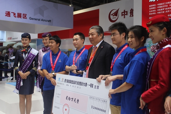 北航新闻网11月13日电(通讯员 郭祖博) 11月11日,由中航通用飞机有限责任公司和爱飞客航空俱乐部主办的爱飞客首届轻型运动飞机创意设计大赛颁奖仪式在珠海航展上隆重举行。该创意设计大赛最终评出一等奖1名、二等奖2名、三等奖3名。我校“梦想”系列飞机设计团队获得一等奖,并获得20万元奖金?;窠狈苫?ldquo;梦想四号”制成大比例模型在航展上与公众见面,中航工业董事长林左鸣亲自为我?;窠蓖哦影浣?。