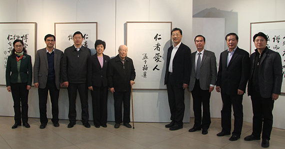 北航新闻网11月15日(记者 余 敏 孙也程) “学而时习之”“三思而后行”“尊师崇道”“吾日三省吾身”……11月15日,由著名书法家、书法教育家欧阳中石先生书写的60余则中华传统美德古训,在北航艺术馆与广大师生及社会观众正式见面。这是继今年9月“欧阳中石书中华美德古训展”在国家博物馆隆重举办、受到社会广泛瞩目之后,该展览首次进入首都高校巡展。