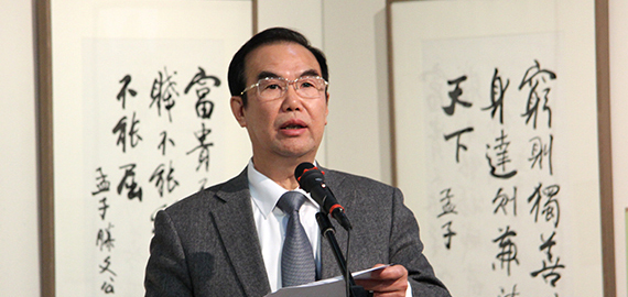 “欧阳中石书中华美德古训展”将书法这一蕴含中华传统文化精髓的艺术表现形式,与中华传统美德古训相结合,展厅中欧阳中石先生书写的60余幅的书法精品,以“德”为统领,深溯德之本源,理清德之应用与发展,分为明德、修身、和合、兴国、大同五部分,将历代名家关于美德的名言和书法艺术创作有机整合一体,既体现以“修齐治平”为核心的传统美德精神,又适应时代文化发展和精神审美的需要。为做好本次高校巡展活动,我校做了大量细致的筹备补充工作,详尽标注了每一条传统古训的典出及释文,方便师生及社会观众加深对中华传统美德的理解与认知。