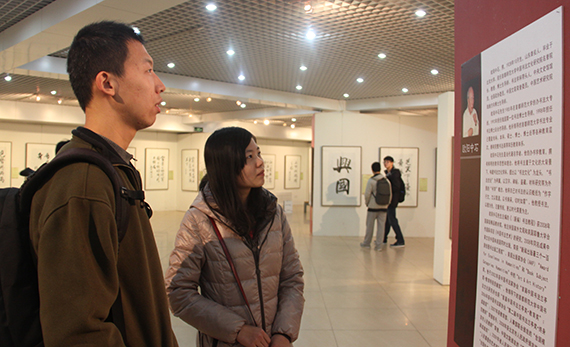 校学生党校、宇航学院等专门组织学生参观了本次展出,同学们一边认真欣赏着一幅幅端正朴茂的书法作品,一边认真学习一则则意蕴深厚的中华传统美德古训,大家纷纷表示活动很有意义,在领略欧阳中石先生精湛的书法艺术的同时,也受到了中华传统美德的熏陶和洗礼,是一次生动的社会主义核心价值观教育。