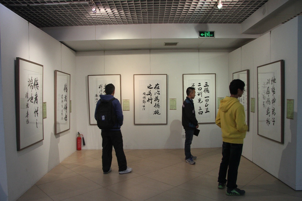 北航新闻网11月20日电(通讯员 吕泽铭、刘洋/文 记者 孙也程/摄影) 近日,“欧阳中石书中华美德古训展”在北航艺术馆开展,此次展出作品为著名书法家、书法教育家欧阳中石先生书写的中华传统美德论著中具有代表性的古训60余则,吸引了不少师生前来观赏。