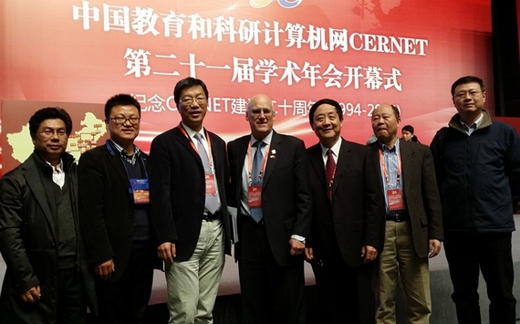 北航新闻网11月27日电(通讯员 杨秀梅/文 胡楠/摄影) 11月25日-27日,中国教育和科研计算机网CERNET第二十一届学术年会暨CERNET建设二十周年纪念大会在北京国家会议中心召开。来自全国各省市教育厅局、各大高校共1500余人参加会议。我校校长怀进鹏院士出席会议,并在会上做了题为《互联网与大数据》的大会特约报告,论述了在互联网环境下对大数据的新型计算模式的研究与思考。我校在会上荣获中国教育和科研计算机网CERNET二十年建设突出贡献奖。