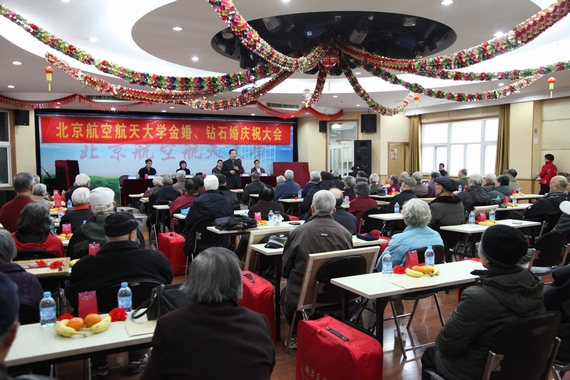 会上,老同志们也积极踊跃地表达了他们相濡以沫半个多世纪的感言。钻石婚代表、93岁高龄的李哲浩教授为所有庆祝金婚、钻石婚、白金婚夫妇作了一首诗《钻石婚有感》:“相依为命,甘苦共尝。情深义切,金石同光。党国人民,培育恩深。春晖寸草,久而弥亲。复兴华夏,筑命成真。大同世界,超凡轶伦。”金婚代表、79岁的人文社会科学学院苏成章老师上台发言,畅谈他们夫妇携手相伴50年的幸福感言,表达了对党、对国家、对学校的热爱与感激之情。他说,我们生活在北航,犹如生活在一个大家庭中,时时感受到大家庭的温暖和激励。他还现场朗诵了自己创作的打油诗《赞金婚夫妻情》:“金婚钻石婚夫妻的情,恰似海洋深,历经岁月磨砺,千锤百炼成金。……岁月催妻生银发,却是更亲更爱如家珍;天若有情天亦老,情到此时炼成金!”