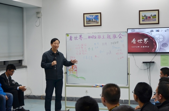 北航新闻网12月1日电(通讯员 崔家浩/文 张竞泽 张啸宇/摄影) 11月28日晚,胡凌云书记来到沙河校区,作为特邀指导老师参加了机械工程及自动化学院140712班“看世界——学好基础,握紧时代”主题班会,并与同学们亲切交流,班会由140712班班长王睿主持。