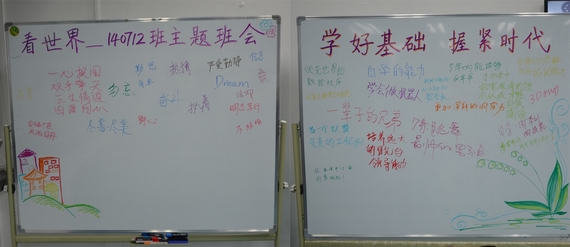 同学们围绕“学好基础,握紧时代”各抒己见,进行了热烈的讨论,吕昕平同学表达了北航学子应该具有航空报国情怀,赵汝升同学鼓励大家要通过知识储备来培养超前的思维等观点,都获得了同学们的认可。同学们纷纷走到白板前,写下了自己大学四年或更长远目标,并且都做了精彩的介绍。随后,班长王睿发出倡议,同学们应该做好未来四年乃至更长的人生规划,来指导大学生涯的学习和生活,同时,作为27名成员的载体,140712班更要有一个长远的规划,保证140712班这艘理想之舟载着同学们顺利到达人生的下一个里程碑。同学们再一次积极踊跃的上台在白板上写下了自己对于班训的理解和建议。