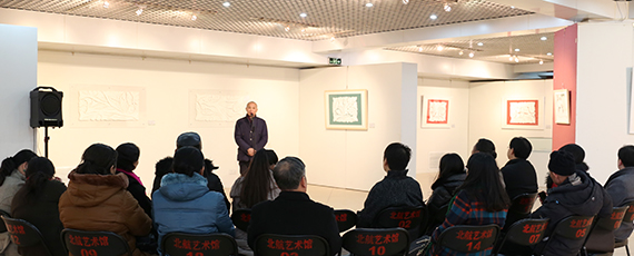 中国民间艺术家协会副主席、中央美术学院非物质文化遗产研究中心主任、博士生导师乔晓光教授,北航宣传部部长、文化与艺术传播研究院执行院长蔡劲松教授在开幕式上致辞,高度评价了蒯世英剪纸艺术中所体现出的艺术表现力和鲜明风格。艺术家蒯世英致感谢辞,并分享了剪纸艺术的创作灵感与深切体会。