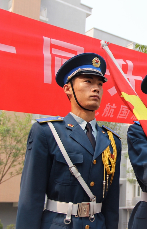 “国家的强大,才是真正的强大。为国家做贡献的职业才是最高尚的职业。”高考前夕,他毅然报考国防生。“选择了国防生,我就已经把自己当作了一块普普通通的砖头,祖国需要我去哪里,我就去哪里!”他笃定的在投身国防科技的道路上一直走下去,不再回头。为了心爱的国旗,他加入国旗护卫队。“三年风雨,一年的艰辛,一年的荣光,一年的坚守,让我真正明白了国旗的意义。国旗是我的信仰,为了她,我甘愿艰辛;因为她,我无上光荣,我忠诚坚守,这是国旗卫士的使命,是我们国旗护卫队永恒不变的使命,我想我们都不会后悔。” 在校期间他多次获得了“军训优秀学员”的称号、还被评为“优秀国防生骨干”。头顶光环,他坚守三年;身为队长,他任重道远。国旗于他意义非凡,“她是我的信仰,为了她,我甘愿艰辛;因为她,我无上光荣。”