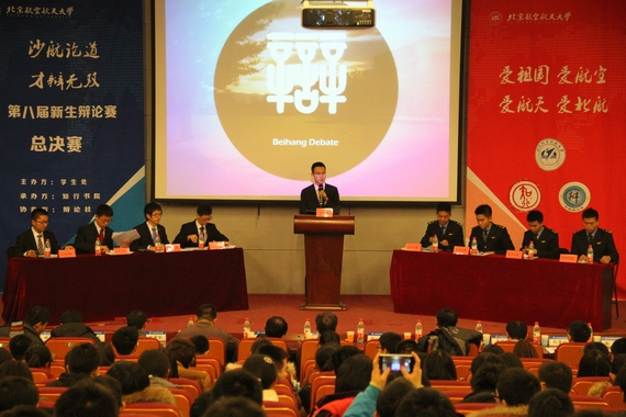 北航新闻网12月29日电(通讯员 齐建立) 12月26日晚,我校“沙航论道•才辩无双”第八届新生辩论赛决赛在沙河校区4号实验楼205报告厅举行。沙河校区、学生处领导和部分学院副书记与400余名2014级本科新生一起观看了比赛。本次竞赛历时一个月,由学生处主办、知行书院承办、辩论社协办,包括预赛、淘汰赛、复活赛和决赛等阶段,来自各书院、学院的22支代表队参赛。