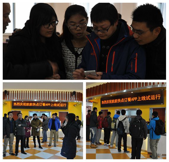 北航新闻网12月31日电(通讯员 朱秀华) 12月30日,作为2014年为师生办实事、升级后勤服务的重点工作,我校信息化与后勤服务深度融合的品牌项目“航航快点”订餐APP正式上线试运行。后勤保障处、网络信息中心、学生处、研工部、校工会等相关单位负责人、信息化工作人员、师生代表共20余人参加上线仪式。我校名师、思想政治理论学院院长姚小玲教授、物理学院研究生卢伟作为首位教师和学生用户全程体验便捷、优质的订餐服务。