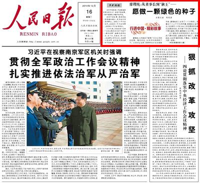 《人民日报》头版报道我校校友廖理纯事迹:从董事长到“锹王”——愿做一颗绿色的种子