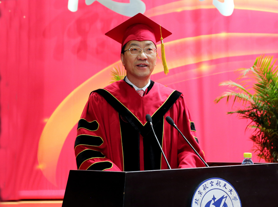 同学们,今天是北航人的节日,全校师生为你们庆祝、为你们饯行。记得在2012年的开学典礼上,我用激情、责任和荣誉三个词与你们共勉。今天,我把视野、勇气和心态,送给你们。视野决定方向,目标源于视野,这是一种智慧;其次是勇气,它有时比智慧还重要;而心态是一种境界,你们懂的。