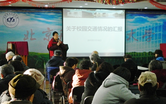 校园交通安全一直是老同志十分关心的问题,学校保卫处处长徐亚军专门在会上向老同志做了关于校园交通安全的专题汇报,并就目前我校交通面临的问题以及将采取的相应措施和具体管理办法向老同志做了详细的分析和解释。