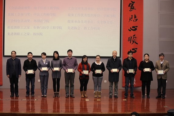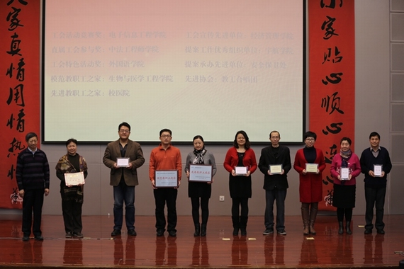 大会颁布了工会工作组织奖、工会活动竞赛奖和教代会提案工作优秀组织单位等集体奖项,以及优秀工会主席、工会工作贡献奖和教职工之友等个人奖项(完整获奖名单见下文),纪素菊主席,校长助理、党政办公室主任李军锋,校教代会常设主席团副主席徐世杰分别为受表彰单位代表和先进个人代表颁奖。校工会原常务副主席秦蓉和机械工程及自动化学院工会委员赵晓慈分别代表新老工会工作者表达了对工会工作的感受。秦老师谈到自己多年来的感触,指出工会是爱心的桥梁,是党联系群众的纽带,广大工会干部不断奉献着爱心,是和谐校园建设中靓丽的风景线。赵晓慈老师认为工会干部大多是一线教师,对待工会工作不仅要负起责任,更要有“心”和有“情”,工会工作就是润物细无声般付出爱心,于细小处见真情。