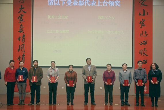 伴随着温馨的回放短片,与会人员一同回顾了我校全体工会工作者和教代会代表一年来的精彩瞬间。纪素菊主席在大会上致辞,她指出,大会表彰的先进单位和个人在过去的一年取得了突出的贡献,在弘扬我校教职员工的优良品格,营造创先争优的校园氛围,推进全校整体改革发展发挥了重要的作用。纪主席同时对于2014年工会、教代会在学校党委的领导下所开展的民主管理、关心关爱教职工、助力青年教师全面发展、维护教职工权益等方面工作进行了总结,并向辛勤奉献的工会委员、教代会代表表示感谢。祝愿大家在新的一年取得更多成绩,创造更多辉煌,为学校改革发展作出更多贡献。