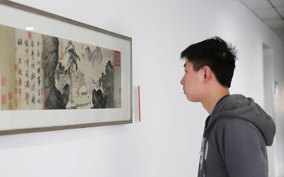 北航新闻网2015年1月27日电(记者 余敏/文 孙也程/摄影) 2015新年伊始,我校新主楼教室环廊增添了许多人文艺术气息,《千里江山图》《富春山居图》等50余幅中国宋元明清时期经典绘画(高仿品),在宽阔、明亮的公共长廊空间墙体上正式“安家”陈列。这个以“中国历代传世经典绘画展廊”为主题的优秀传统文化滋养与展示项目,由北航文化与艺术传播研究院、文化传媒集团共同承担完成。