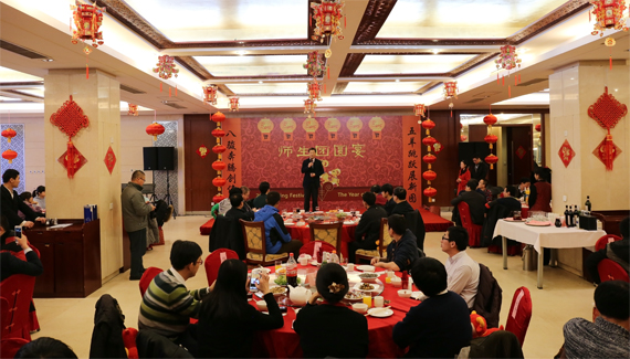 北航新闻网2月17日电(通讯员 高超/文 记者 王晴/摄影)瑞马奔腾送冬去,喜气洋洋迎春来。2月17日,培训餐厅张灯结彩,喜气洋洋,透出浓浓的节日气氛,学校新春师生团圆宴在这里隆重举行。校长怀进鹏院士,党委副书记、副校长张军院士,党委副书记程基伟同春节留校学生欢聚一堂,共贺羊年新春佳节。