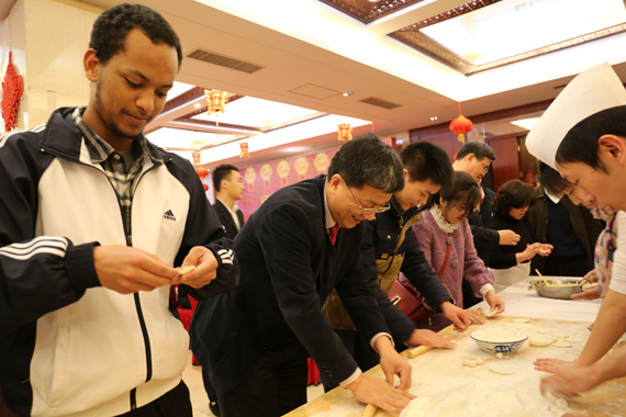校领导同学生一起包饺子 王 晴 摄