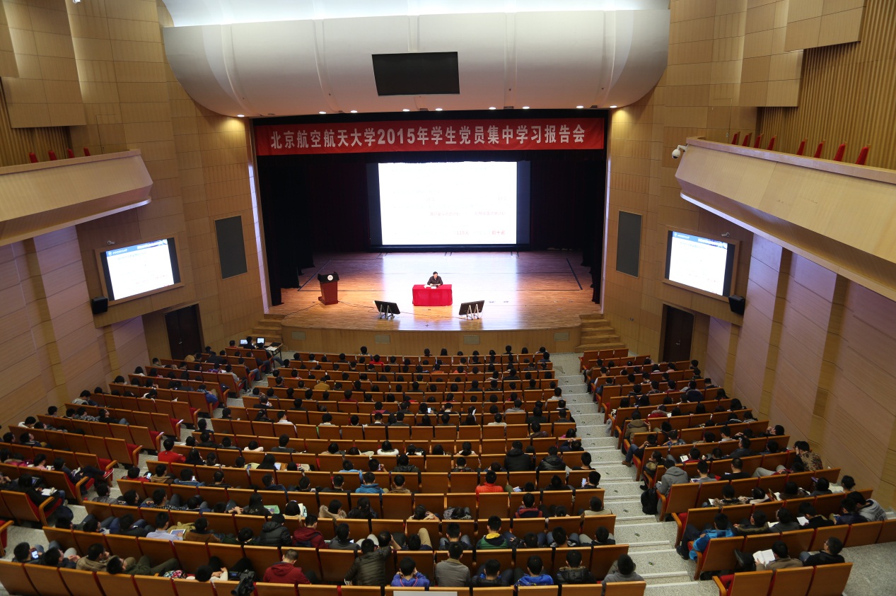 北航新闻网3月9日电(通讯员 吕泽铭 齐建立/文 李畅 马征 王婷婷/摄影 )3月7日和8日,我校以“弘扬大爱精神、践行社会主义核心价值观”为主题举行2015年学生党员集中学习报告会。校党委书记胡凌云教授为全校学生党员作校情通报,党委副书记、副校长张军院士主持报告会。中共中央党校研究室教授、中央电视台特约时政评论员辛鸣,中国飞行试验研究院副院长、ARJ21首席试飞员赵鹏,国防大学战略研究所所长、《苦难辉煌》作者金一南少将分别以《凝聚精气神,打造软实力——践行社会主义核心价值观的几个问题》、《兴趣·梦想·使命》和《中国梦——从民族救亡到民族复兴》为题作学习辅导报告。