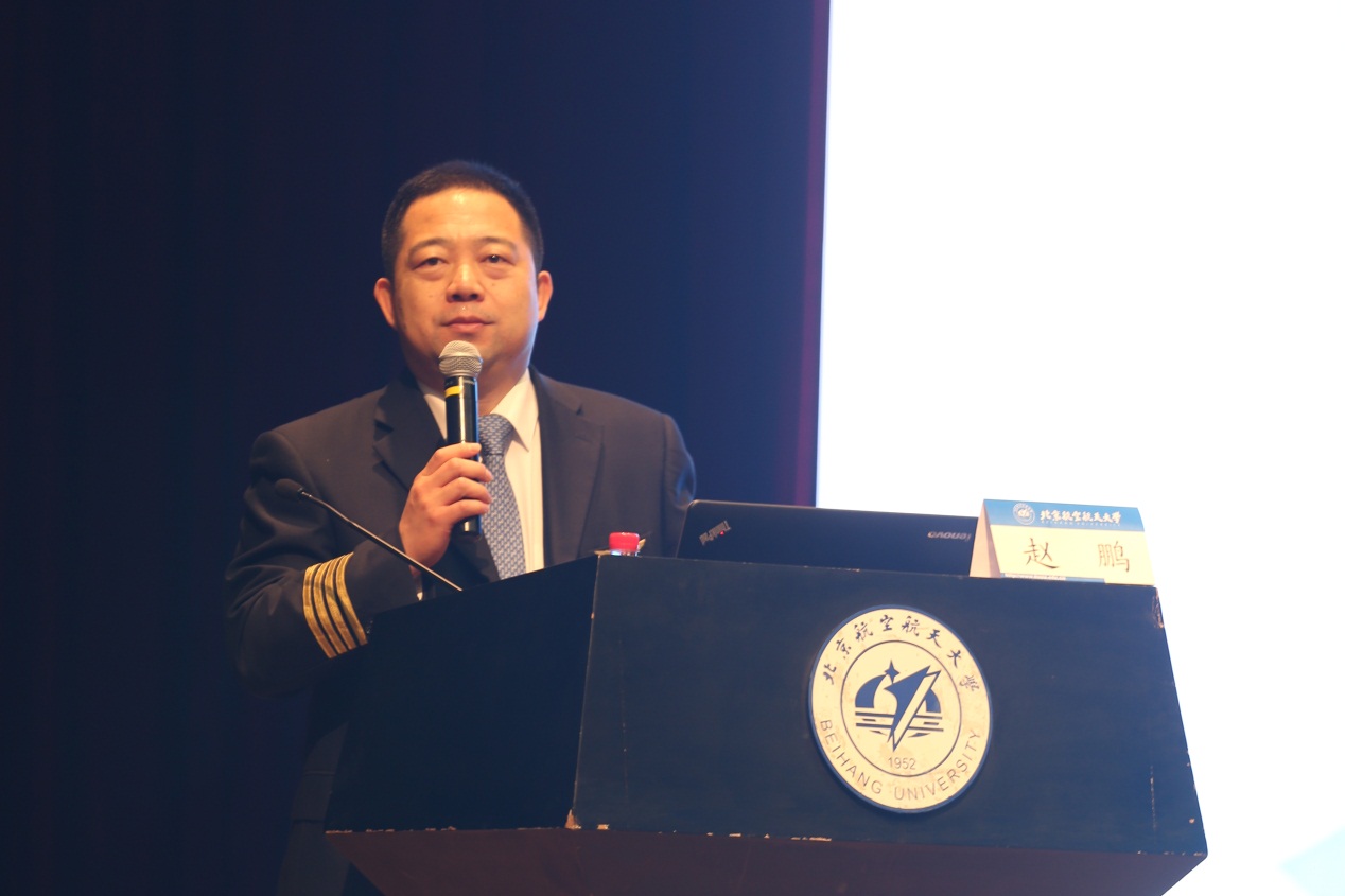 从“带着对蓝天的渴望,成为中国首位硕士试飞员”到“异国练翅,成为中国首位国际试飞员”,从“实现ARJ21完美首飞”到“攻克ARJ21飞机地面最小操纵速度试飞”,赵鹏校友回顾了自己的成长经历,分享了不断探索过程中的挫折和感受。他表示,今天取得的这些成绩得益于在北航打下了坚实的航空理论基础,获取了探索未知领域的方法;得益于在北航培养了敢为人先、携手共进的精神和勤奋严谨的作风。他激励同学们应抓紧在校时间,沉得下心,吃得下苦,耐得住寂寞,努力学习,成长为社会栋梁之才。