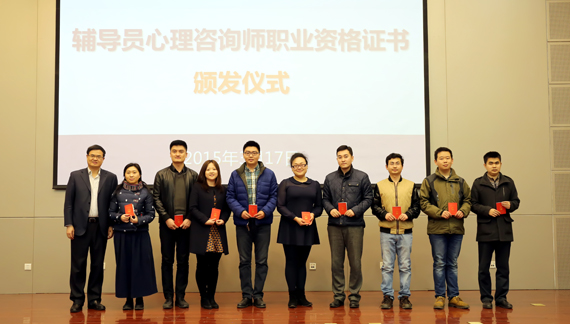 为推进辅导员队伍专业化建设,提高辅导员的工作胜任力,学校组织部分专职辅导员参加了人力资源和社会保障部的心理咨询师三级职业资格考试,党委副书记、副校长张军院士为通过心理咨询师职业资格考试的辅导员颁发了证书。