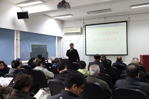 北航新闻网3月19日电(通讯员 刘佳秀/文 杨茹/摄影) 3月18日上午9时,新退休教职工欢迎大会在思源楼三层报告厅如期举办。离退休工作处全体工作人员热情欢迎87位新退休教职工的到来。离退休教职工党委书记、离退休工作处处长白曌宇致欢迎词。离退休教职工党委副书记、副处长宋青嵩宣读了新退休人员名单?;队蠡嵊衫胪诵莨ぷ鞔Ω贝Τ?、副书记郭永秀主持。
