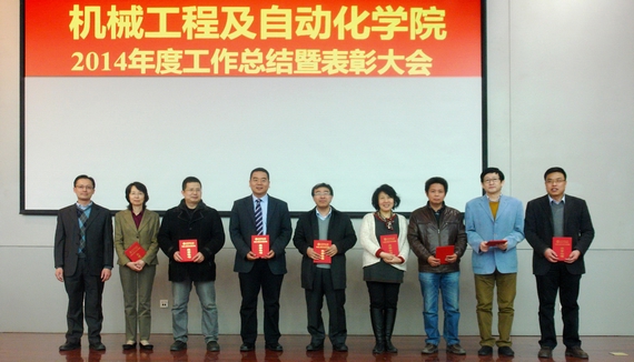 大会表彰了2014年机械学院获校级及其以上荣誉的集体和个人,特别鼓励了在学院教学、科研和管理等方面做出突出贡献的单位和个人。于靖军、蔡军、李东升、周正干四位副院长简要总结了2014年的分管工作成绩与不足,点评了其中表现突出的个人和集体,并为获奖教师代表颁发了证书。