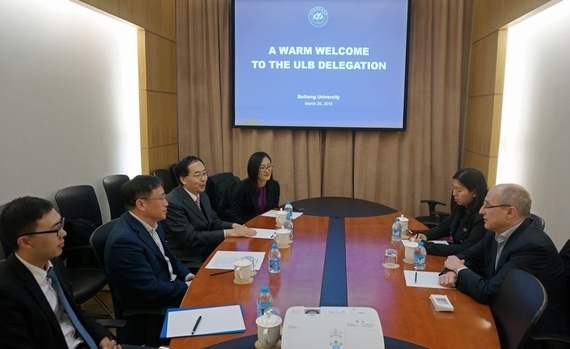 布鲁塞尔自由大学(简称ULB)创建于1834年,是欧洲著名的综合性、研究型大学之一,具有一流的教学和科研水平。该校曾培养出5位诺贝尔奖得主,其中包括去年6月到访我校的2013年诺贝尔物理学奖得主弗朗索瓦·恩格勒教授。2014年3月,北航与布鲁塞尔自由大学签署战略合作协议,两校升级为战略合作伙伴。目前,两校已互派30多名学生进行交换学习、硕士或博士双学位联合培养,并在理学、工学、经管、人文学科开展了实质性的科研合作。