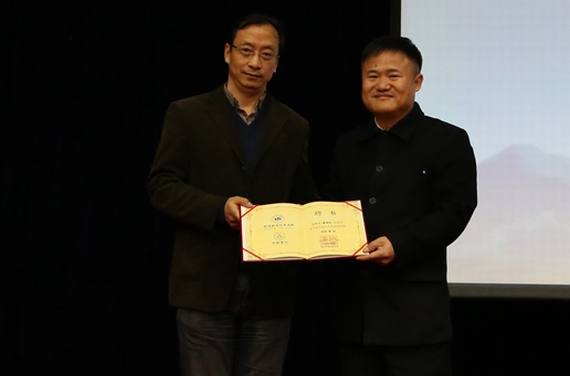 自动化学院院长焦宗夏教授为廖理纯校友颁发“资深梦拓”聘书