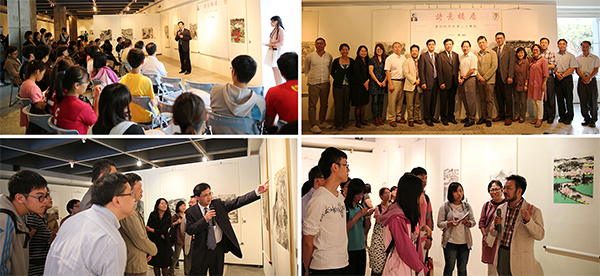 展览共展出北航文化与艺术传播研究院蔡劲松、马良书创作的水墨山水画60幅,以及2件数位互动作品。我校张维维常务副书记、成功大学董旭英学务长、成功大学博物馆陈政宏馆长、成功大学艺术中心吴光庭主任等出席开幕式并致辞,高度评价了我校两位学者型艺术家在中国山水画创作领域富有成效的探索和取得的进展,希望两校相关领域的专家学者进一步密切联系,不断加强、拓展学术交流与互动。