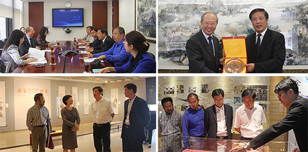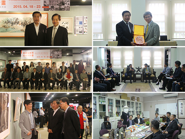 在台湾师范大学,张维维常务副书记一行先后与台师大张国恩校长会面,与吴正己副校长等进行了深入座谈交流,参观考察了该校艺术学院和文化创意产学中心,并应邀出席了台湾师范大学典藏品维护与保存计划“2015年度修复纪录暨成果展”。
