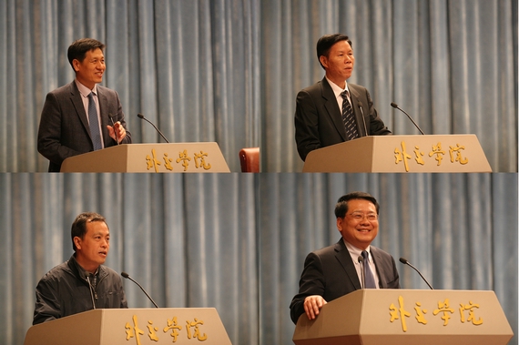 我校徐惠彬校长首先致辞,他指出,外交学院、中央财经大学和北航都是各自领域中的顶尖高校,与这么优秀的邻居和伙伴互相学习共同成长,是青年学子的幸运和幸福。沙河校区是三所高校未来发展的重要增长极,随着建设和发展,未来园区的学术氛围和文化品味一定会越来越好。今天恰逢五四青年节,是青年朋友们的节日。96年前的今天,青年学生走上街头,吹响了反帝反封建的号角,形成了爱国、进步、民主、科学的五四精神。今天我们纪念五四运动,学习五四精神,要将青年梦融入到中华民族伟大复兴的中国梦中去实现。最后,徐校长寄语青年朋友“以青春之我,创建青春之家庭,青春之国家,青春之民族”,并预祝“第三届沙河高教园区文化交流月”圆满成功。中财傅邵林书记在致辞中强调,三所高校虽然在办学理念上有着各自的特色,但均具有深厚的文化背景,具有很强的互补性,希望加强交流互动,服务学子成长。沙河高教园区管委会主任王冰在致辞中表达了对文化交流活动的肯定和支持,并祝愿文化交流月越办越好。外交学院院长秦亚青致辞指出,加强交流可以密切三校之间的关系,同时互相学习,相互借鉴优势,有利于三校学生的共同成长。