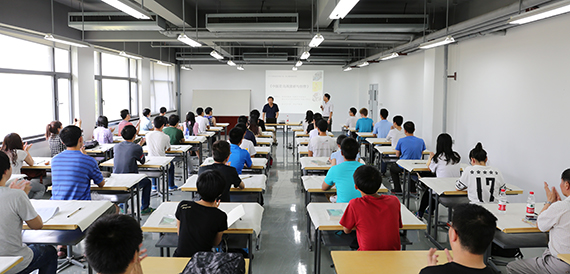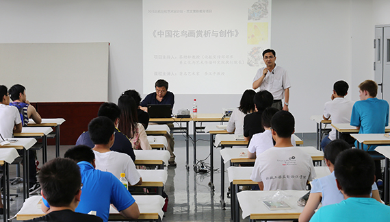 北航新闻网5月21日电(记者 余 敏) 5月21日下午,北航沙河校区实验7楼205教室艺术工作坊里座无虚席,著名花鸟画家李汉平教授围绕中国花鸟画的传承与发展、赏析与创作,图文并茂、深入浅出地为50余名同学进行精彩讲解,拉开了北航2015年度驻校艺术家计划“中国花鸟画赏析与创作”研修班的帷幕,给沙河校区葱郁温馨的美丽校园,增添了浓厚的传统文化意蕴和艺术审美气息。