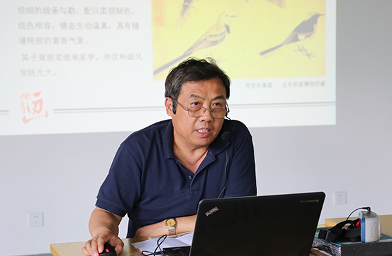 在“中国花鸟画赏析与创作”研修班的第一堂课中,李汉平教授向学员们重点讲授了“中国花鸟画概述”。从中国花鸟画的渊源与演进,到各时期花鸟画的艺术特征,到花鸟画的文化地位,再到其构成要素以及笔、墨、纸等绘画材料准备……李汉平教授广博的知识涵养、激情饱满的讲授,使中国花鸟画的发展脉络、特征属性,丰富而生动地呈现在同学们面前。