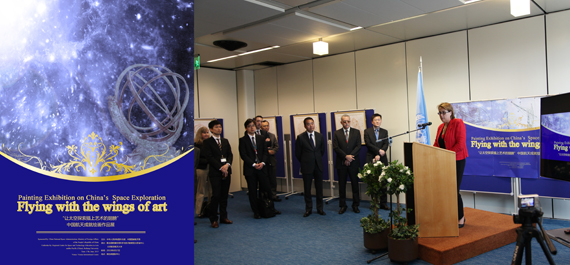 开幕式上,联合国外空司司长迪皮蓬女士致辞,充分肯定了这次画展的意义,赞扬中国在外空探索上所做的积极努力。联合国和平利用外层空间委员会第58届会议主席奥赛迪克先生也应邀参加了画展开幕式,并高度赞赏此次画展。他在致辞中表示,航天科技主题画展有机结合了外空科技与艺术,彰显了中国的外空科技实力。