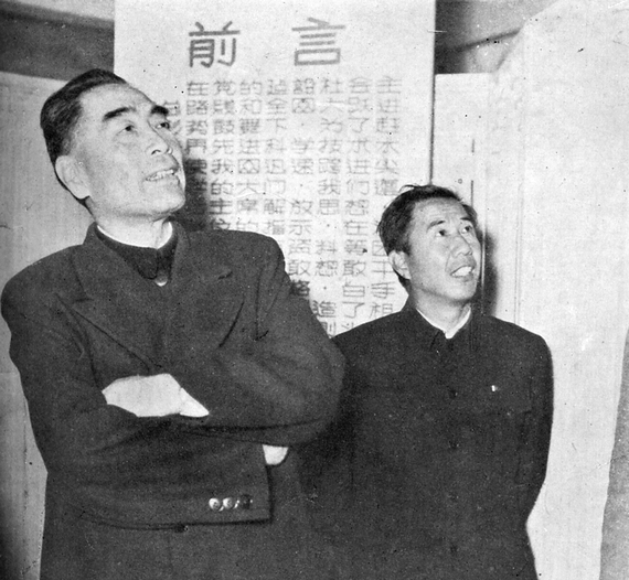 1958年10月,周恩来总理在武光院长的陪同下,参观北航科研成果展览会