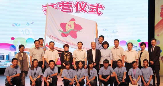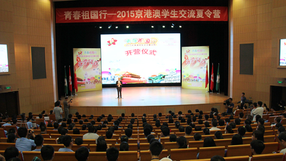 北航新闻网7月20日电(通讯员 夏菊萍/文 记者 王晴/摄影)7月18日,“2015青春祖国行—京港澳学生交流夏令营”代表团一行680余人访问我校,在我校晨兴音乐厅隆重举行开营仪式。教育部港澳台事务办公室常务副主任赵灵山、北京市委副秘书长郭广生、北京市委教育工委常务副书记张雪、香港特别行政区教育局局长吴克俭、澳门特别行政区教育暨青年局局长梁励等领导出席开营仪式。我校常务副书记张维维在晨兴音乐厅贵宾室会见了参加活动的领导和嘉宾并出席了夏令营开营仪式。