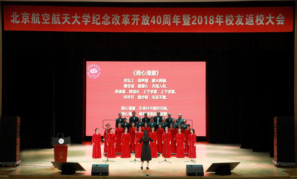 “北京航空航天大学庆祝改革开放40周年暨2018年校友返校大会”在优美、激昂、慷慨的北航校歌《仰望星空》中落下帷幕。