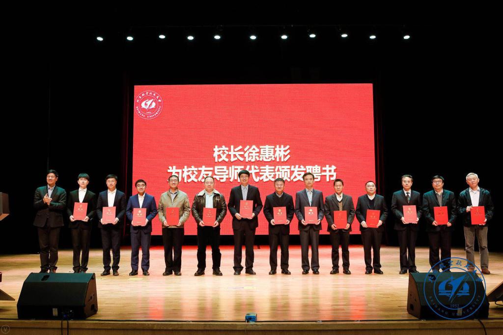 校长、校友总会会长徐惠彬院士为13名校友导师代表颁发聘书 |