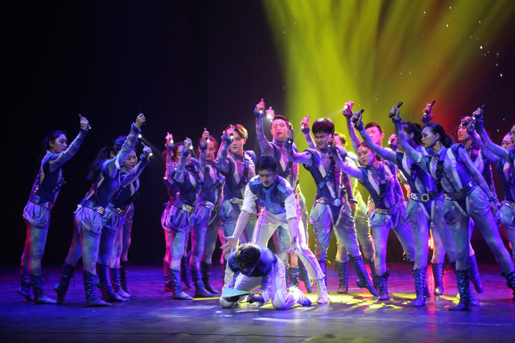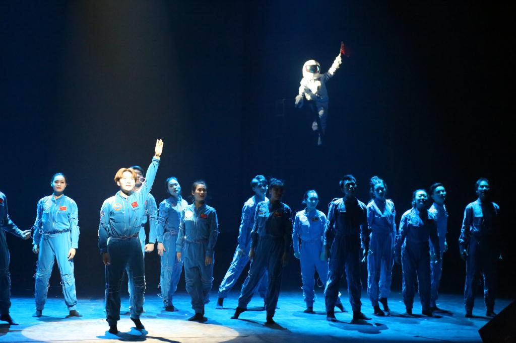 《追梦者的足?!芬宰费昂娇彰挝魈?,展现了北航学子及航空人的执着坚守,引起观众共鸣。在深蓝色的星空背景下,原创群舞《逐梦苍穹》伴随着东方红恢弘的音乐将观众带入航天事业最艰难的年代,用舞蹈展现航天人刻苦科研、不断向前的精神,感人至深,台下掌声雷动。